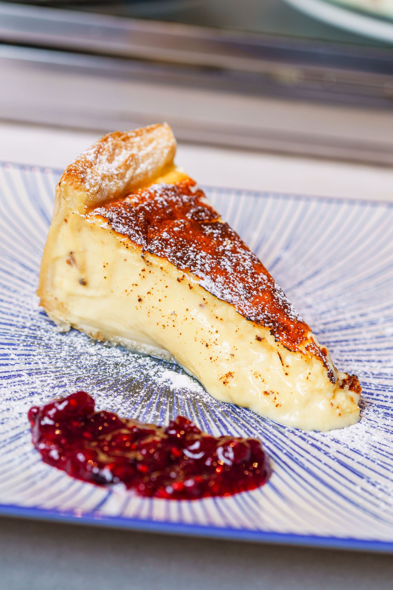 Carved and served with french fries, beer-braised peppers and shallot confit.